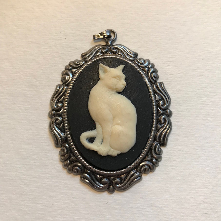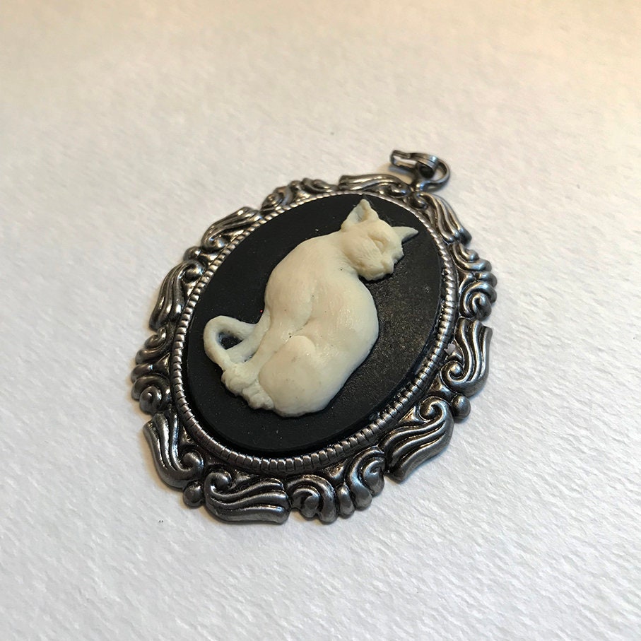 A Pure Sin original handmade item made by myself; this item is just for you! This ivory on black Cat cameo is just beautiful with its vintage inspired look;)