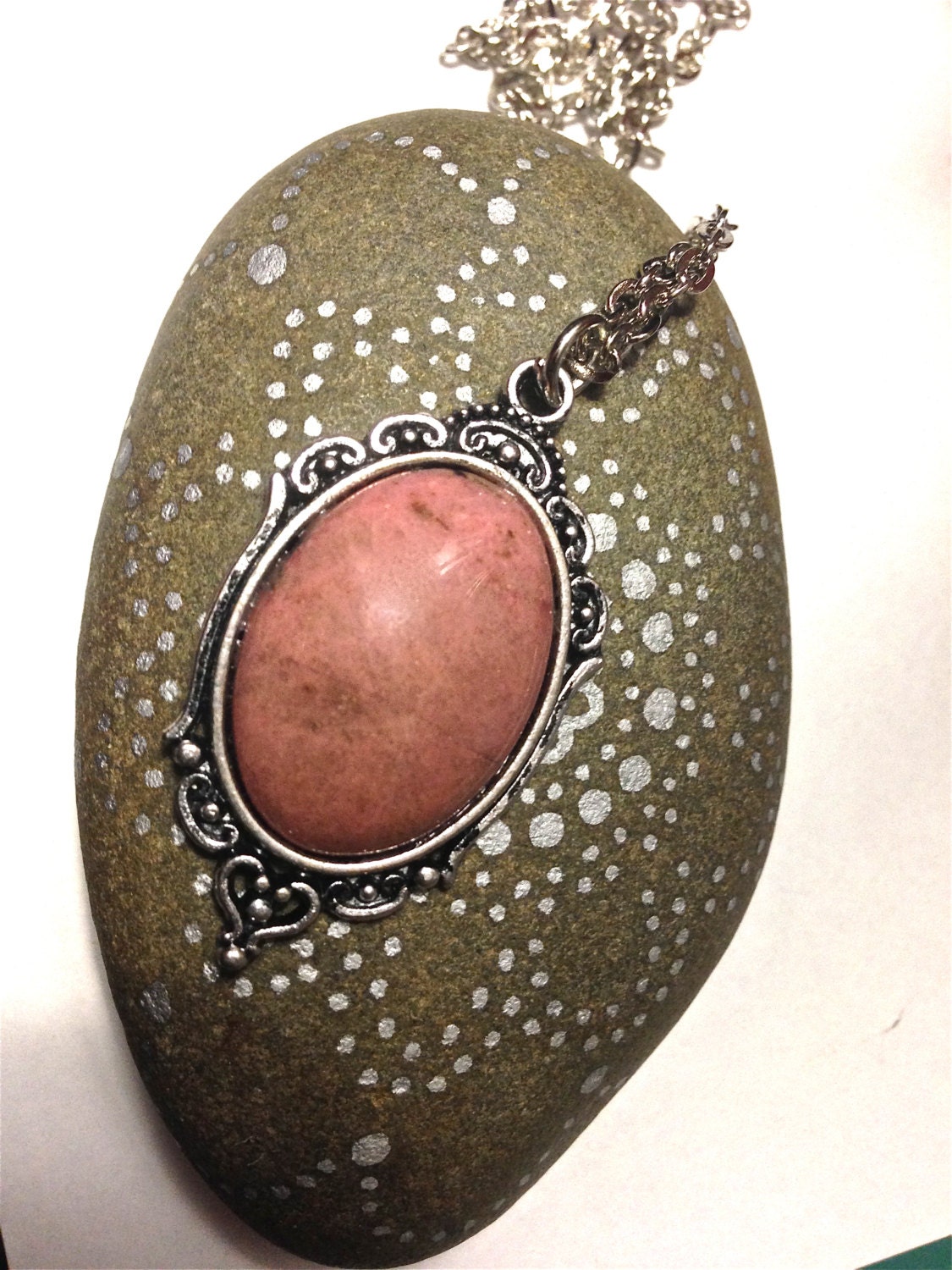 Attn: This made to order and does not contain this exact piece of rhodonite but one like it that I hand pick so it will not ship immediately. If you have any questions please message me.
